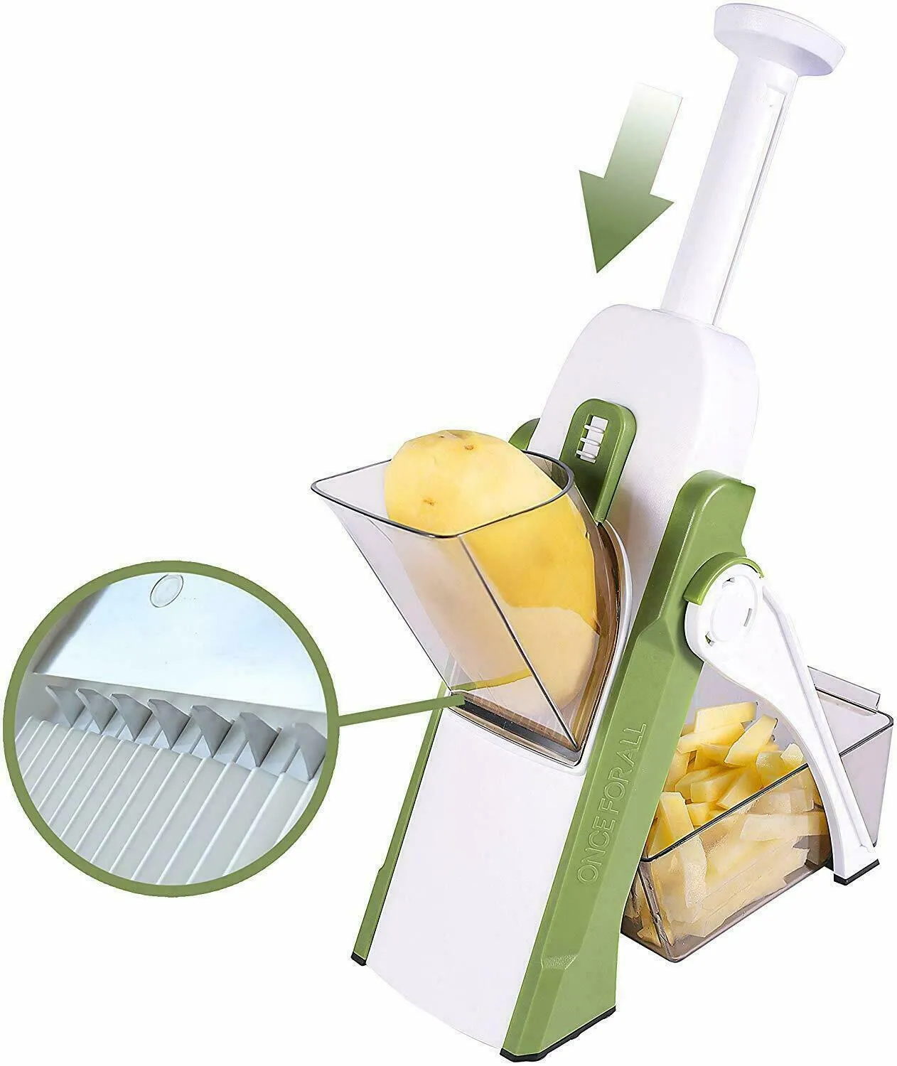 Product details of SAJEES] Once for All's Safest Mandoline Vegetable Slicer: 4 Cutting Modes & 40 Thicknesses to Slice, Dice, Chop, Julienne, Chip Veggies, Injury-Free Design,
