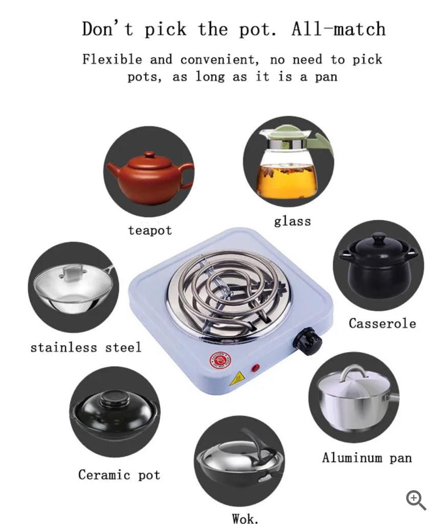 - Compatible with All Cookware: The electric stove works with a wide variety of cookware, including pots, pans, and griddles, providing versatility for different cooking styles. It is perfect for use with stainless steel, cast iron, or non-stick cookware.