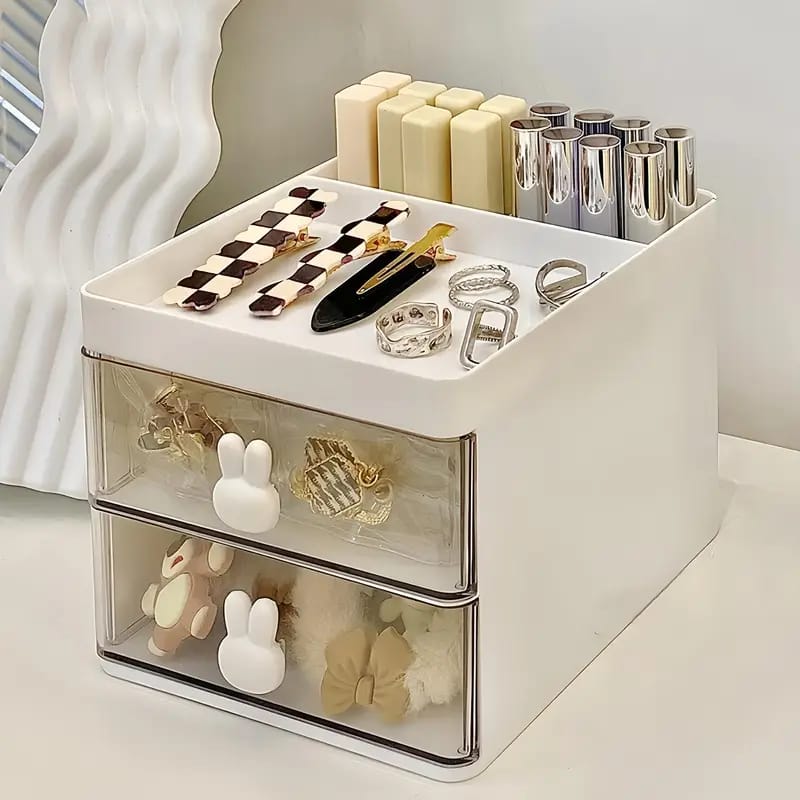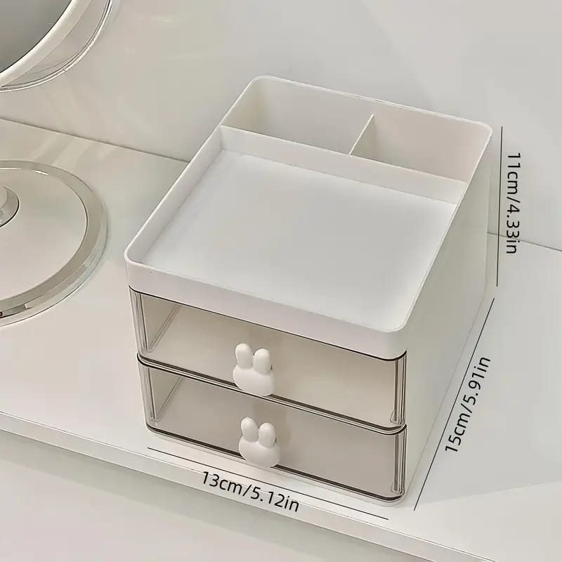 Add charm and functionality to your space with the Rabbit Cosmetic Organizer with Drawers. Featuring a cute bunny design, spacious compartments, and pull-out drawers, this storage box is perfect for keeping makeup, brushes, glasses, jewelry, pens, or office supplies neat and tidy. Whether on your dressing table, study desk, or office shelf, this organizer brings style and order to your daily life.